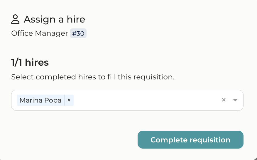 If the requisition is only for one position, you can complete it by assigning a hired candidate.