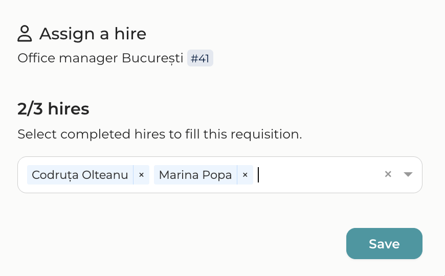 If you have hired only a part of the required positions, add them to the requisition and click on Save.