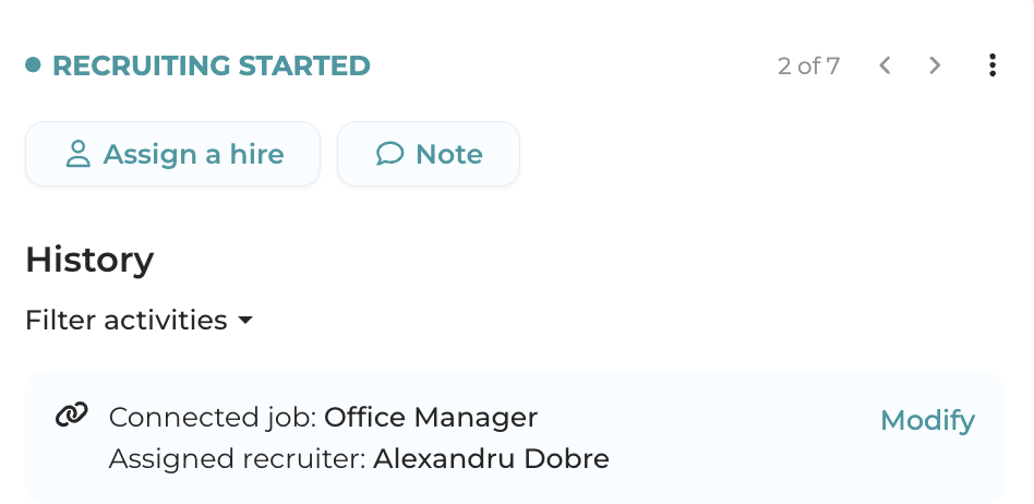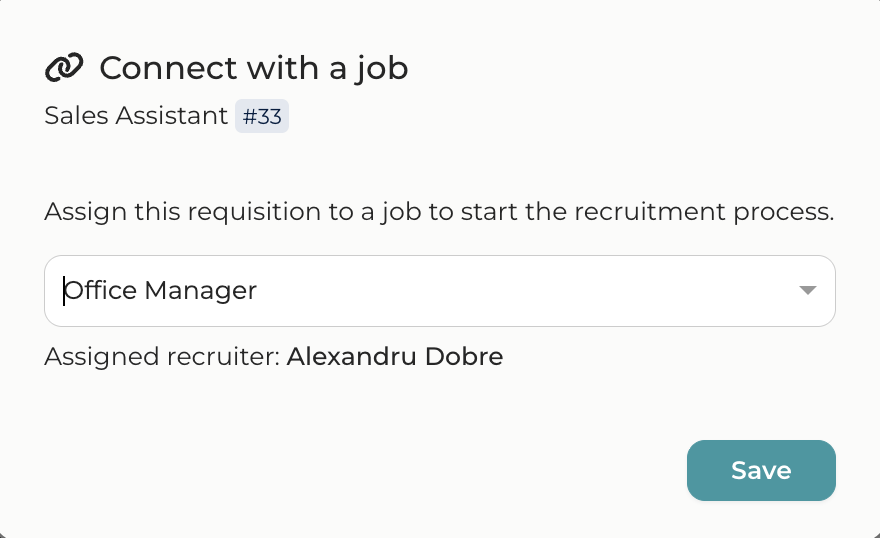 When choosing a job, you will also see if the job already has a recruiter assigned - its name will be displayed in this window. Complete the action by clicking on Save.