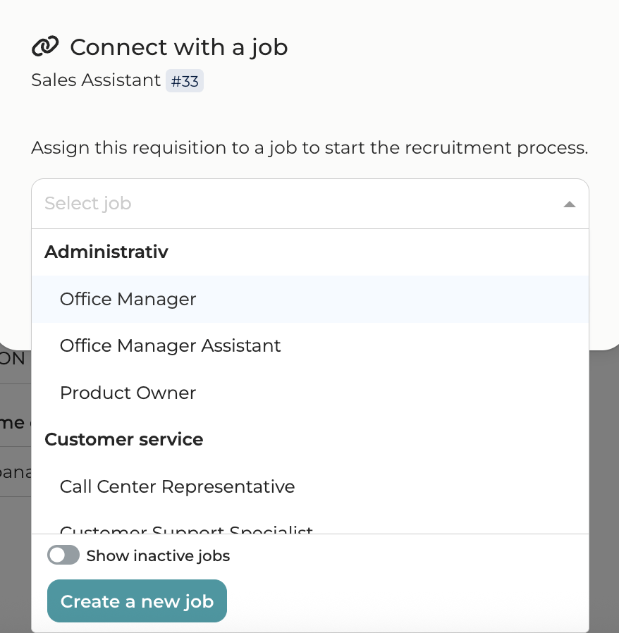 You will see a pop-up with a list of existing jobs. Search for the job you want to connect the requisition with.