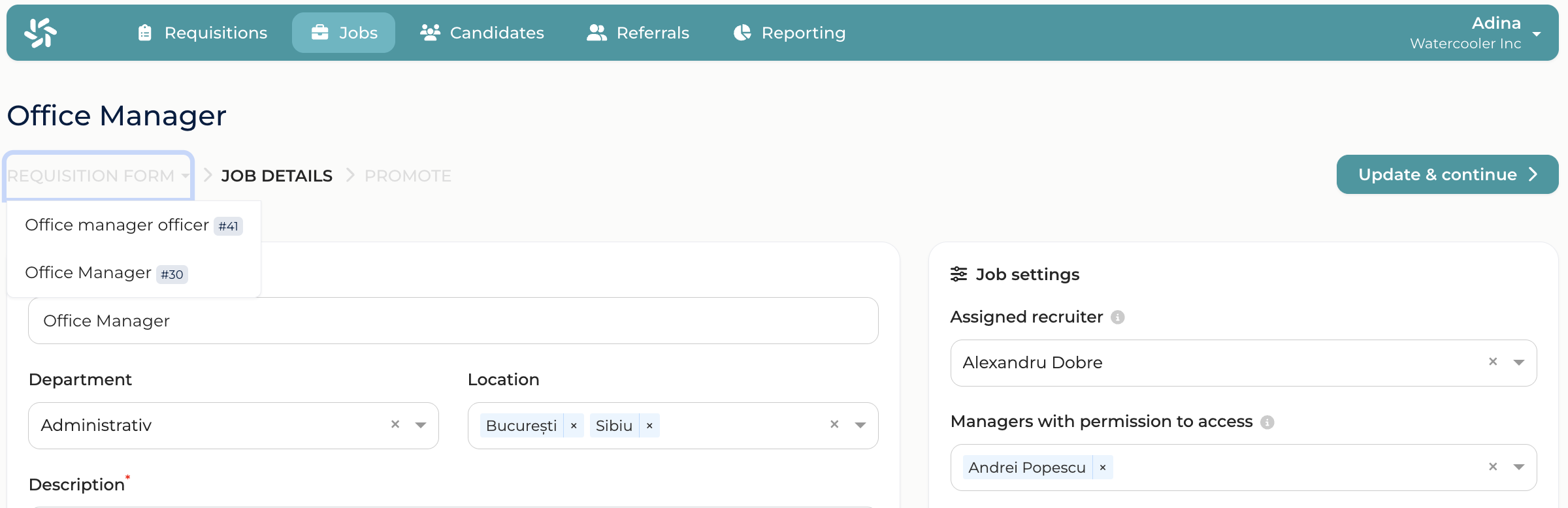 When you associate a requisition with a job, its status will change from „Approved” to "Recruiting".