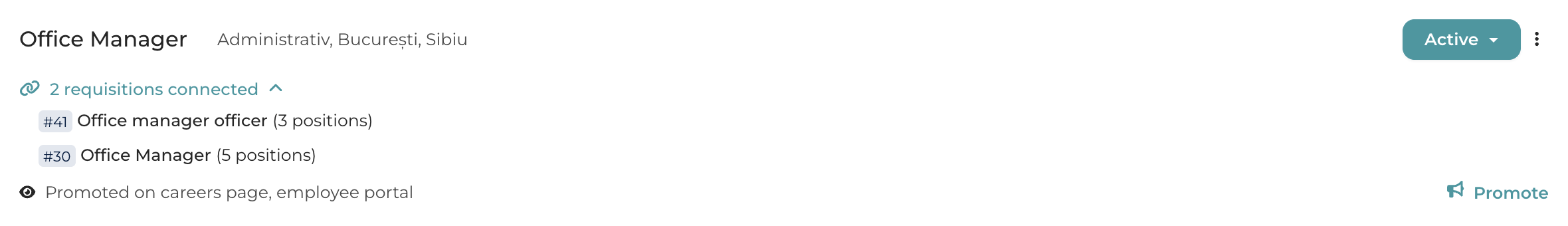 In the Jobs tab, you can see the active requisitions connected with every job. A job can be connected to one or more requisitions.