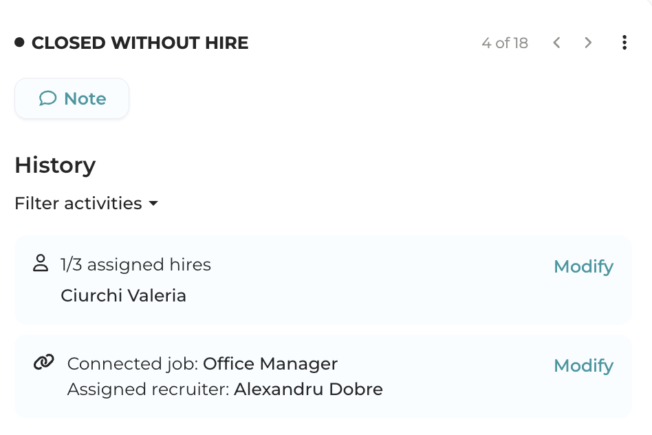 After this, the status will change to "Closed without hire“.